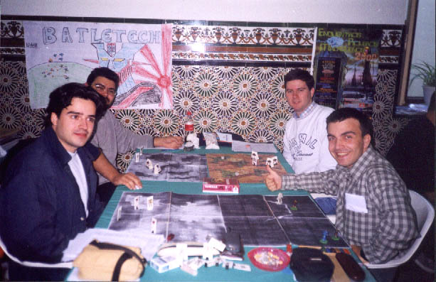 combates. El combate exterior corresponde a Carlos(Karl) y Salva(Sven). El combate interior es el de Guillermo(Ulric) y Fernando(Isoroku). Pueden distinguirse claramente los mapas en los que luchamos y ambos posters de las paredes. El que indicaba nuestra zona y el de los propios Encuentros. |