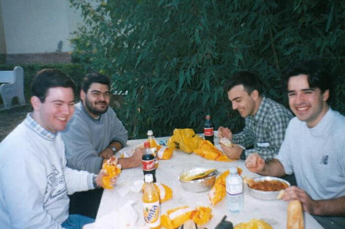 Estas fotos las hizo Alberto, por eso he tardado en pillarlas. Arriba se nos puede ver comiendo el Sábado. (Algunos se preguntarán cómo comió Karl sin cubiertos. Nosotros nos haciamos la misma pregunta, jeje. Y abajo teneis las posiciones iniciales de la Grand Melee. |