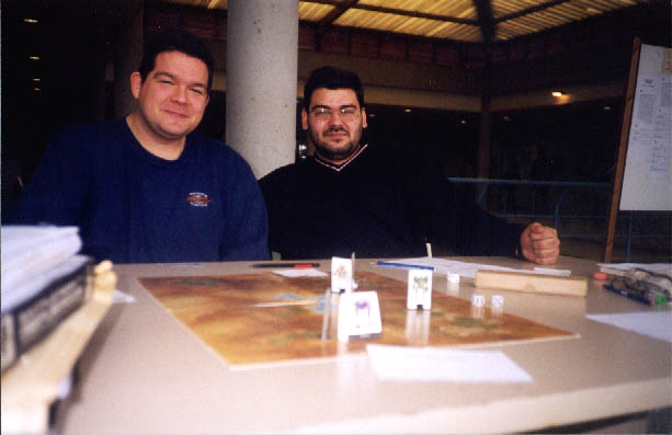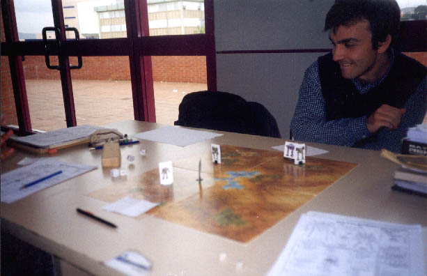 Esta foto tiene mucha historia que ya se contará, pero ya puede verse que ya me había deshecho del Trebuchet y tras esta tirada dejé inútil al Cyclops.(Aunque no fuera de combate). La cara de Fernando fue igualita que la que tiene varias fotos atrás cuando perdió uno de los Demonios de Kell. |